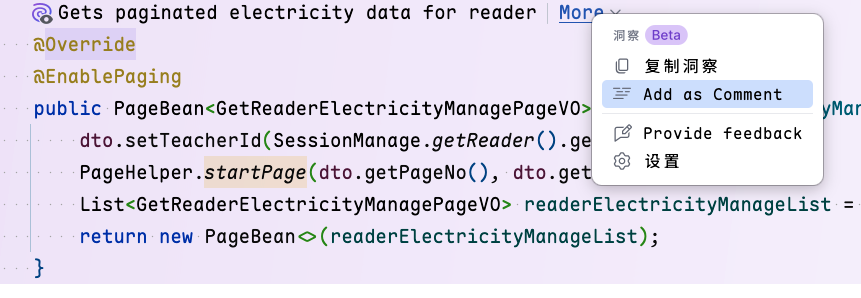 当它洞察完成,你就可以复制洞察结果,或者直接将它添加为代码中的注释: